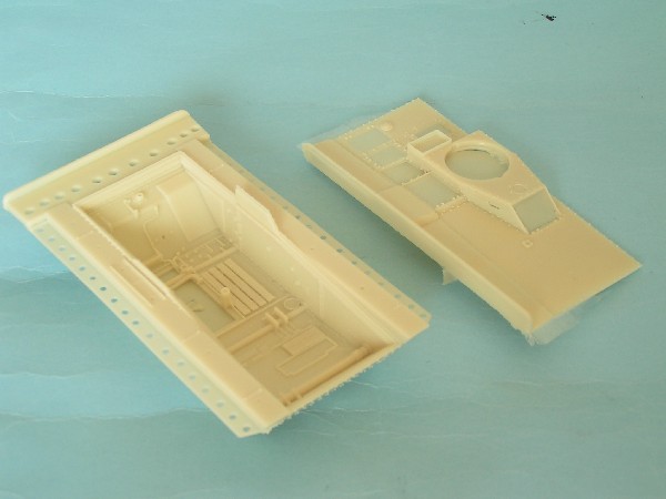 W dwóch pierwszych woreczkach znajdujemy wannę kadłuba. Oba elementy wykonano z duża dbałością o szczegóły, pięknie odwożono nity i wyposażenie, zarówno z zewnątrz jak i wewnątrz, gdyż pojazd można wykonać z całym wnętrzem, które będzie widoczne przez włazy i wzierniki, a wszystkie je możemy wykonać w pozycji otwartej.