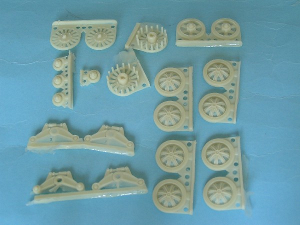 Gąsienice przewidziano jako ogniwkowe, łącznie 182 sztuki zapakowane w jedną torebkę. Od razu wzbudziły we mnie skojarzenie z dragonowskimi Magic Truckami. Trochę tylko więcej pracy z obrabianiem.
