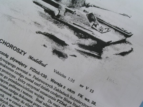 Od 2007r. w ofercie firmy Choroszy Modelbud znajdują się modele pojazdów wojskowych w skali 1/35. Jeśli chodzi o czołgi „z krwi i kości” to w chwili obecnej są to prototypy lekkiego czołgu pływającego PZInż – 130. Do wyboru mamy trzy rodzaje tego pojazdu: