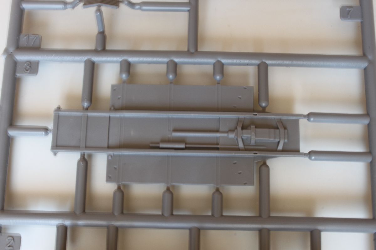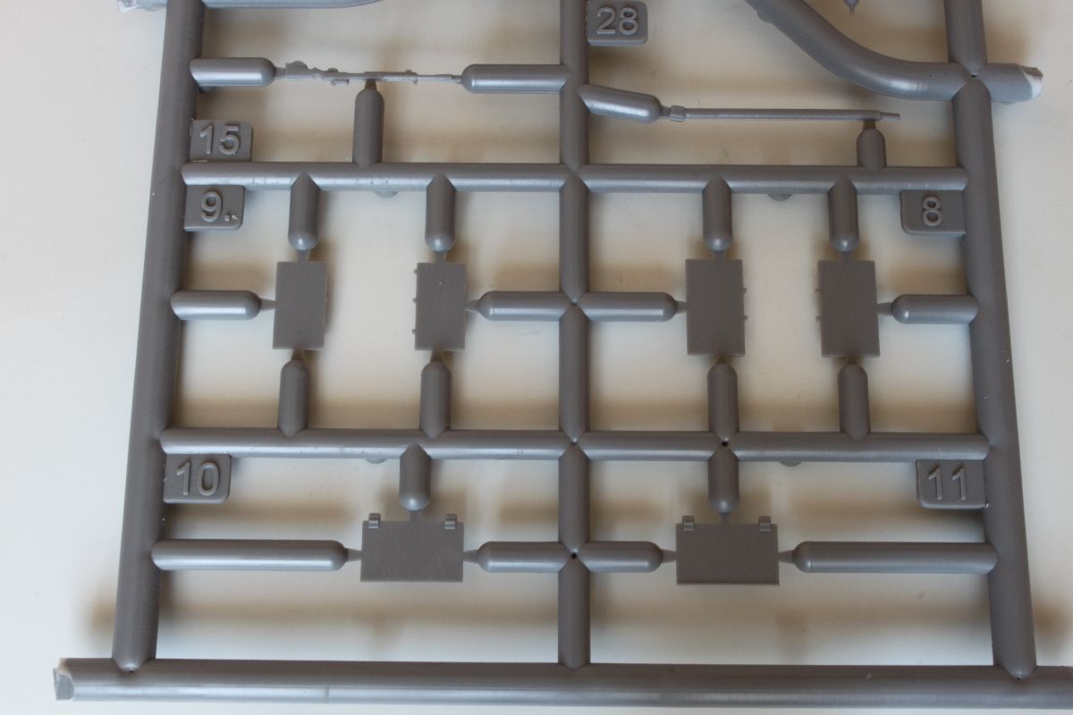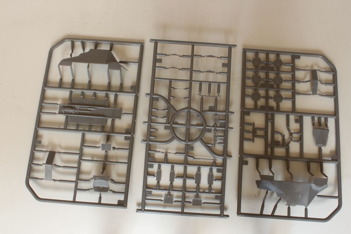 Zestaw składa się z 38 elementów zgrupowanych w jednej ramce, którą z kolei podzielono na trzy części, żeby wszystkie mieściły się w pudełku. Tworzywo z jakiego wykonano części jest ciemnoszare, takie samo jak w przypadku jego większego brata. Podobny jest także poziom wykonania części, czyli całkiem dobry. Zacząłem się natomiast zastanawiać czy miałem rację pisząc, że spawy w modelu w skali 1/35 wymagają poprawy. W małym Kubusiu na pewno nie będę ich poprawiać, bo wyglądałoby to kuriozalnie, natomiast w przypadku 35-tki sprawa jest otwarta. Spotkałem się z opiniami, że na pewno trzeba je poprawiać, ale są tez tacy, którzy twierdzą, że spawy te są poprawne. Ta ostatnia opinia pochodzi od ludzi zajmujących się również rekonstrukcją historyczną i obcującą z prawdziwymi pojazdami. Kwestia zatem jest otwarta, decyzję podejmę po analizie zdjęć. Może uda mi się obejrzeć prawdziwy pojazd.