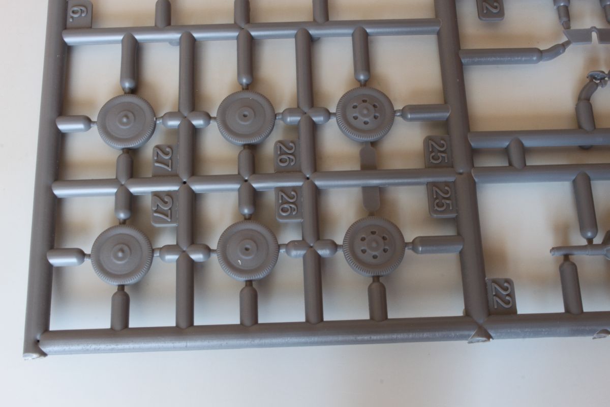 Koła wykonano jako jednolite odlewy – felgi razem z oponami, ale na bardzo dobrym poziomie. Również drobne detale takie jak uzbrojenie, resory czy wszelkiego rodzaju uchwyty czy pokrywy prezentują dobry poziom, może tylko końcówka lufy w przypadku rkm-u DP wymaga poprawki, ale poza tym replika nie wymaga większych ingerencji ze strony modelarza.