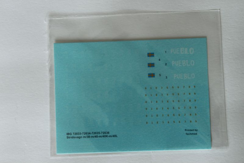 Kalkomania to niewielki kartonik, podobnie jak w przypadku niszczycieli klasy Hunt przeznaczony jest do wszystkich wersji które są już w sprzedaży, lub pojawią się lada chwila. Co prawda we wstępie napisałem, że zestaw zawiera tylko jedno malowanie, ale nie jest to do końca prawda. Poprzez wydrukowanie kilku kompletów wszystkich cyfr, mamy cała gamą kombinacji, ograniczona jedynie... strukturą organizacyjną szwedzkiej broni pancernej. Producentem kalkomanii jest Techmod, a zatem o ich jakość możemy być spokojni.