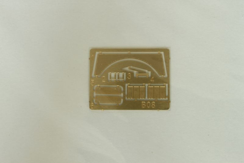 Uzupełnieniem elementów z polistyrenu jest niewielka blaszka fototrawiona. Znajdujemy na niej siatki pokryw przedziału silnikowego oraz kilka drobnych detali. Co prawda nie wszystko co znajduje się w blaszce ujęto w instrukcji, ale bez problemu można ustalić co jest do czego. To co najistotniejsze, czyli najdrobniejsze detale, w instrukcji jest.