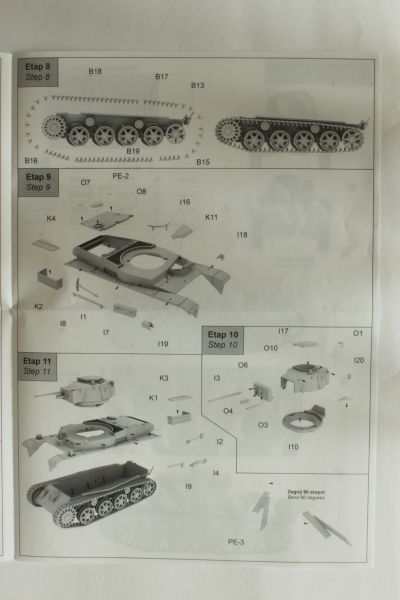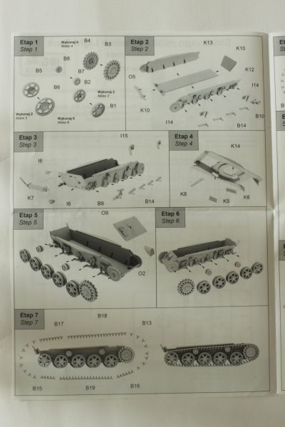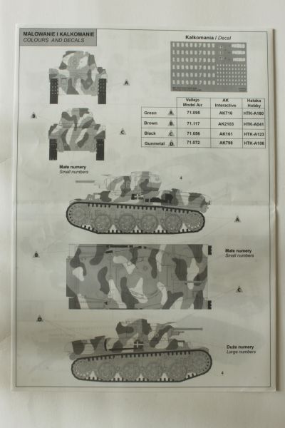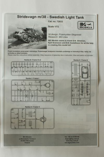 Instrukcja ma postać ulotki wydrukowanej na papierze kredowym. Na pierwszej stronie znajdują się podstawowe informacje o modelu oraz diagram z poszczególnymi ramkami. Dwie kolejne strony to schematy montażowe, opracowane zgodnie z dawno przyjętymi przez IBG standardami w postaci reandrów 3D. Czytelne, choć wymagają wnikliwego przestudiowania, przed rozpoczęciem budowy. Ostatnia strona to schemat malowania opracowany w sposób jasny i czytelny. Kolorystyka według Vallejo, AK Interactive oraz Hataka Hobby.