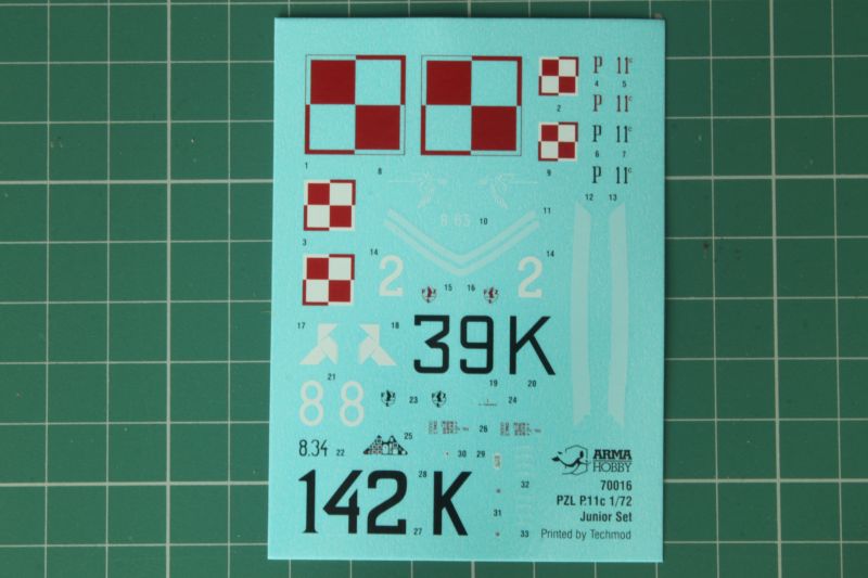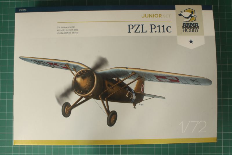 Model:PZL P.11c Junior Set, Nr kat.: 70016 Skala: 1:72 Producent: Arma Hobby Tworzywo: model wtryskowy plus elementy fototrawione, Malowanie: 2 x Polska, |