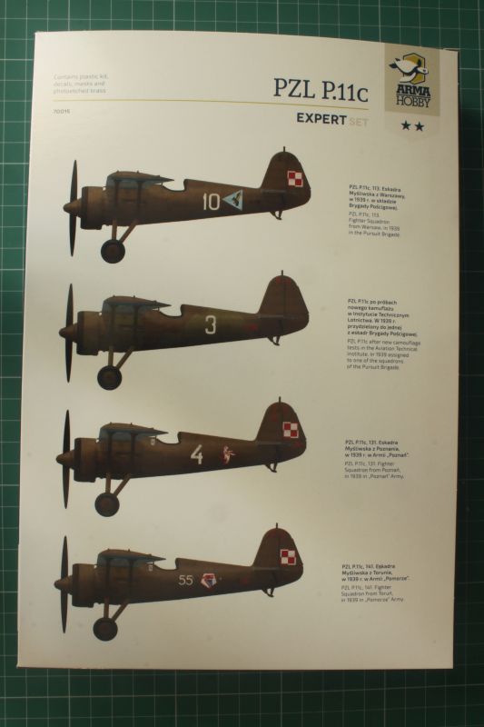 Model:PZL P.11c Expert Set, Nr kat.: 70015 Skala: 1:72 Producent: Arma Hobby Tworzywo: model wtryskowy plus elementy fototrawione, maski, Malowanie: 4 x Polska |