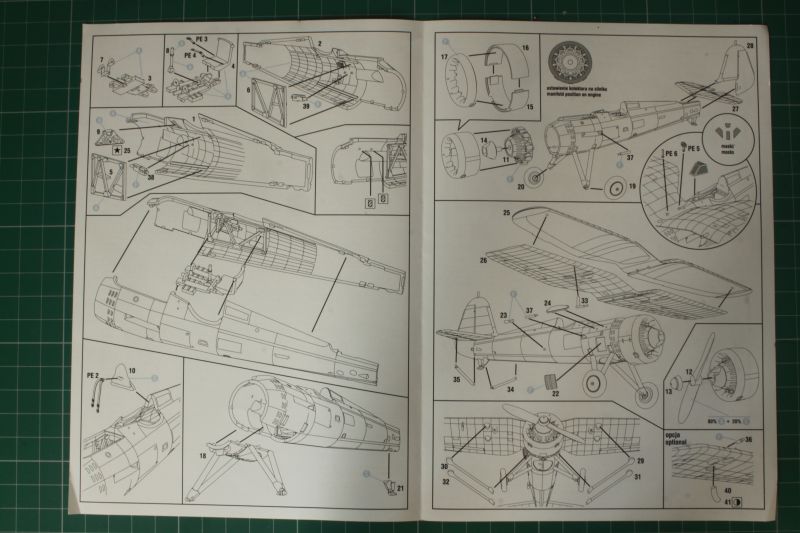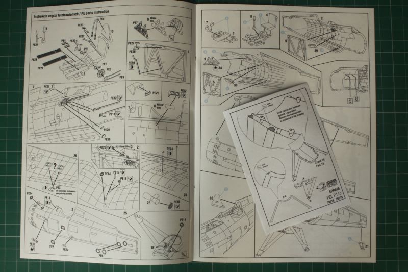 Instrukcja jeśli chodzi o szatę graficzną nie zmieniła się w stosunku do poprzednich modeli. Dołączono do niej natomiast erratę w postaci małej ulotki. Znajdziemy w niej informację w jaki sposób dokonać korekty goleni podwozia, żeby możliwe było prawidłowe połączenie tego elementu z kadłubem. Ponieważ ta usterka wyszła na jaw podczas klejenia modelu testowego, producent zdecydował się w ten sposób poinformować modelarzy. Bardzo się to chwali.