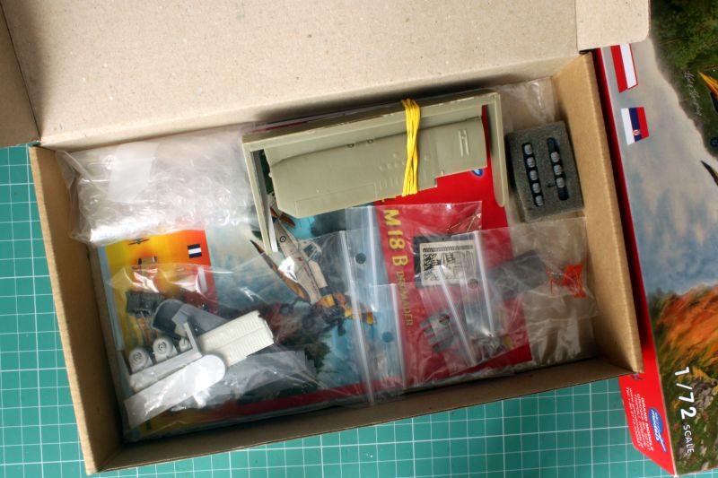 Model, jak to w przypadku krótkoseryjnych zestawów żywicznych zapakowano w niewielkich rozmiarów tekturowe pudełko oraz kolorowe wieko z bardzo ładnym, dynamicznym boxartem oraz garścią informacji o modelu i malowaniach. Robi bardzo przyjemne wrażenie, miło wziąć do ręki. W środku znajdujemy spięte na gumkę odlewy skrzydeł, torebki z elementami, gąbkowy profil z odlewami cylindrów silnika, tajemnicze zawiniątko z folii bąbelkowej oraz całą papirologię – instrukcję i kalkomanie. Pierwsze wrażenie jest bardzo pozytywne, sporo ładnie odlanych elementów, multimedia w postaci blaszek i odlewów metalowych, spory arkusz kalkomanii, a także dość sensowny podział technologiczny. W przypadku większości odlewów żywicznych nie ma kostek wlewowych, ani co ważne pęcherzy powietrza. Model ma klasyczny podział technologiczny. Wszystko byłoby dobrze, gdyby nie fakt, że mój serdeczny Kolega Marek Wierzchowski, modelarz i pilot w jednym, zna Dromadery jak własną kieszeń. Kiedy pochwaliłem się tym modelem na swoim Facebooku otrzymałem bardzo obszerną dokumentację zdjęciową a także wykaz tego, co trzeba poprawić. Niestety trochę tego jest, z całym szacunkiem dla Załogi z Grand Models. Ale po kolei.