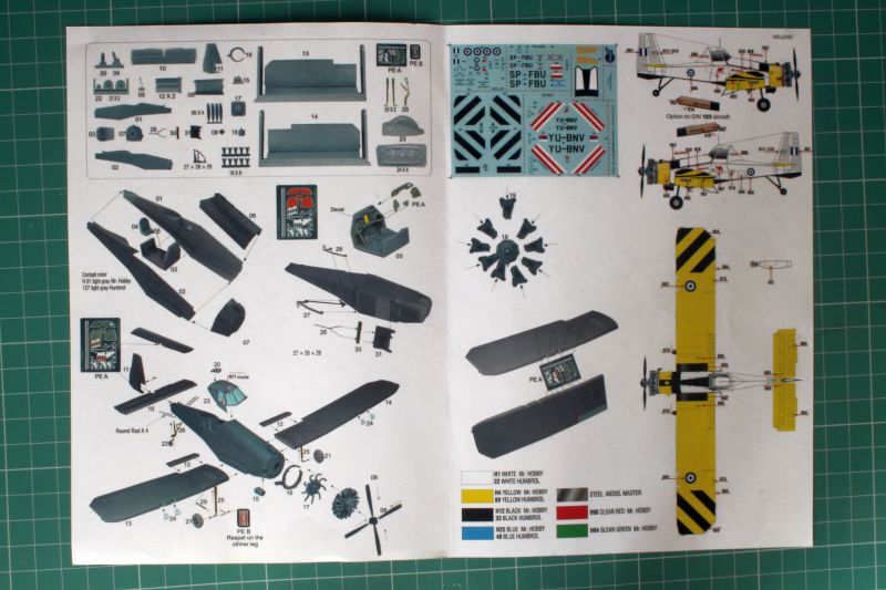 Instrukcja na postać kolorowej ulotki. Kartka A4 złożona na pół. Na pierwszej stronie powtórzono rysunek z boxartu i schematy malowania. W środku natomiast znajduje się rozpiska z zestawieniem poszczególnych elementów zestawu wraz z ich numeracją, rysunki montażowe oraz schematy malowania. Na pierwszy rzut oka może się to wydawać mało czytelne, ale po dokładnym przestudiowaniu ulotki kłopotów z kolejnością montażu nie powinno być. Kolorystyka została podana według palety Humbrola i Mr. Hobby. Jeśli ktoś nie zdecyduje się na propozycje malowania Dromadera zaproponowane przez producenta, może pokusić się o malowanie Chorwackie z okresu konfliktu z Serbią. Chorwacja nie miała wtedy własnego lotnictwa wojskowego i stosowała działania improwizowane, jednym z nich było adaptowanie Dromaderów do roli lekkich bombowców.