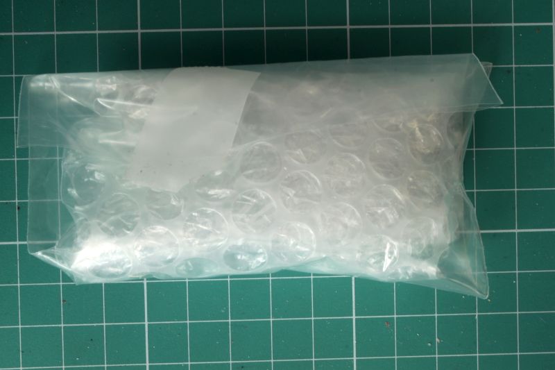 W pudełku pośród torebek znajduje się także tajemnicze zawiniątko – foliowa torebka z bąbelkową folią w środku. W tę folię zawinięte jest oszklenie, czyli osłona kabiny i klosze reflektorów, które zamontujemy w krawędziach natarcia. Przezroczyste elementy wykonano metodą vacu. Jest ono cienkie i dość delikatne, dlatego trzeba będzie bardzo uważać przy wycinaniu, tym bardziej, że dysponujemy tylko jednym kompletem oszklenia.