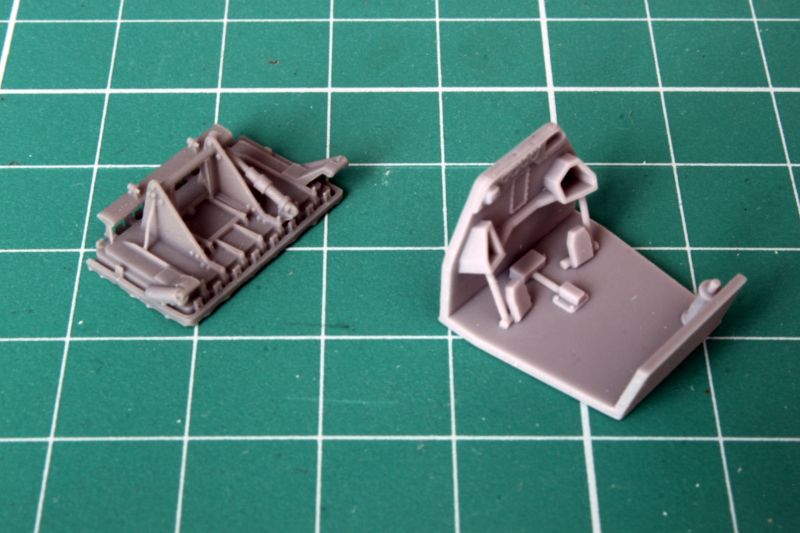 Ta sama uwaga dotyczy pozostałych detali kokpitu, czyli podłogi, fotela oraz zagłówka. Są one wykonane bardzo przyzwoicie, ale można wycisnąć z nich więcej, znacznie więcej, dodając brakujące panele przewody, czy dźwignie. Producent wyszedł najwyraźniej z założenia, że większość modelarzy nie będzie otwierać kokpitu. Na uznanie zasługuje natomiast urządzenie do zrzutu wody, czy tez chemikaliów, widoczne na zdjęciu po lewej. Jest to niezwykle precyzyjny i delikatny detal, do którego wystarczy jedynie dorobić kilka przewodów.