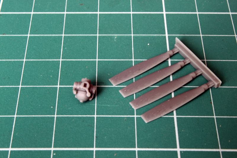 Silnik i śmigło to bardzo mocne punkty całego zestawu. Detale są bardzo szczegółowe, ale szalenie delikatne. Trzeba będzie bardzo uważać, zwłaszcza podczas wycinania i obróbki, poza wspomnianymi cylindrami silnika, które montujemy osobno w bloku silnika, od tyłu doklejamy kolektor spalin, pajączek z niezwykle delikatnymi przewodami. Ułamały mi się dwa, i myślę, że wszystkie zastąpię nowymi z drutu cynowego.
