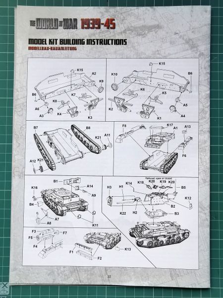 Instrukcja malowania znajduje się na odwrocie pudełka, nie podano jednak szczegółów odnośnie tego, gdzie służyły pojazdy, których modele możemy wykonać w oparciu o ten zestaw. W każdym razie schemat malowania jest taki sam dla wszystkich opcji. Instrukcja montażu znajduje się z ostatniej stronie czasopisma, do którego dołączono model. W środku znajdują się informacje w językach angielskim i niemieckim dotyczące historii powstania i genezy tego pojazdu, a także dotyczące malowania. Materiał ikonograficzny jest tu raczej symboliczny, więc jeśli chcemy do budowy modelu przystąpić z odpowiednią dokumentacją, musimy ją zgromadzić we własnym zakresie.
