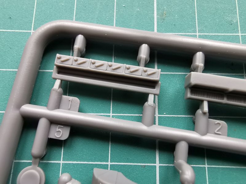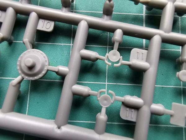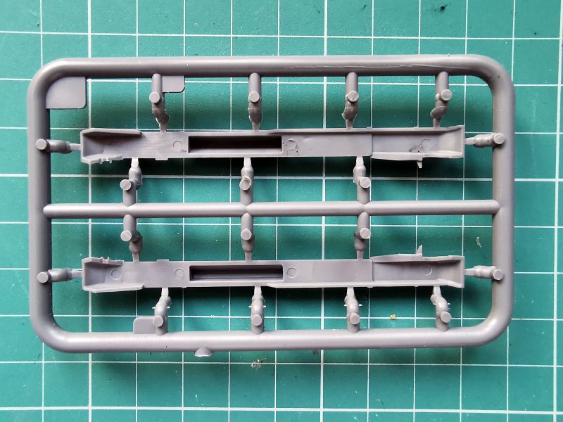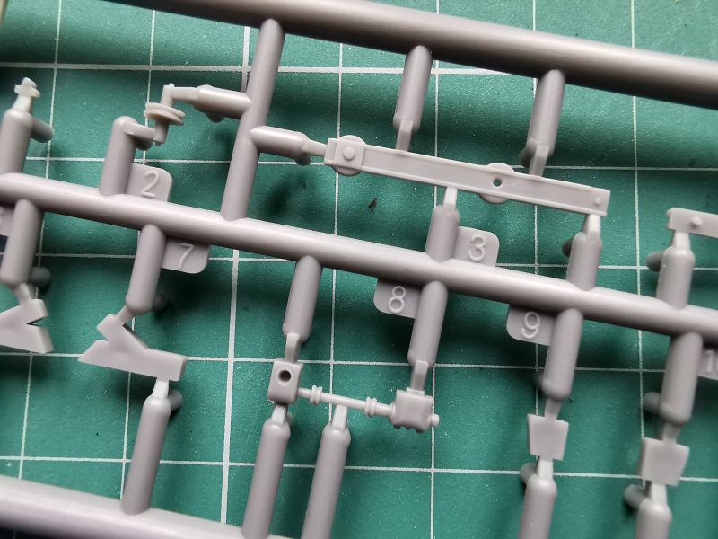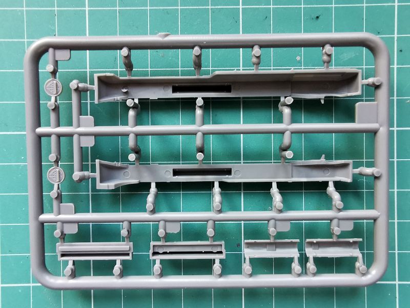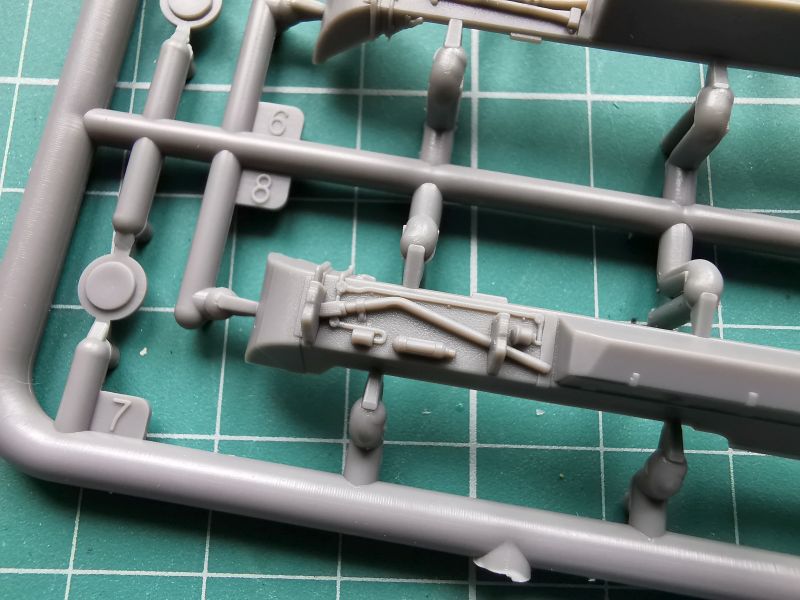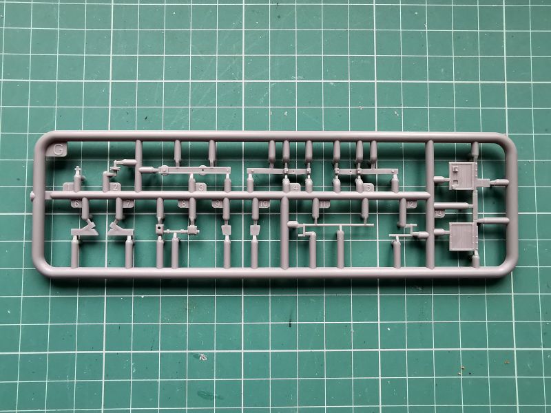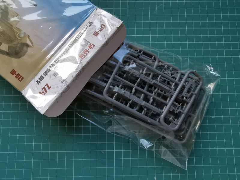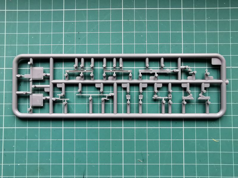 Ponieważ ten zestaw jest kontynuacją wcześniej rozpoczętej serii, nic dziwnego, iż większość wyprasek będzie pochodzić z wcześniejszych wersji. Podobnie jak w ich przypadku będzie co kleić, ponieważ pudełko jest po brzegi wypełnione wypraskami, które z kolei zapakowano do dwóch foliowych torebek. Wyprasek jest w sumie sześć, do tego dochodzi blaszka, klisza oraz kawałek linki.
