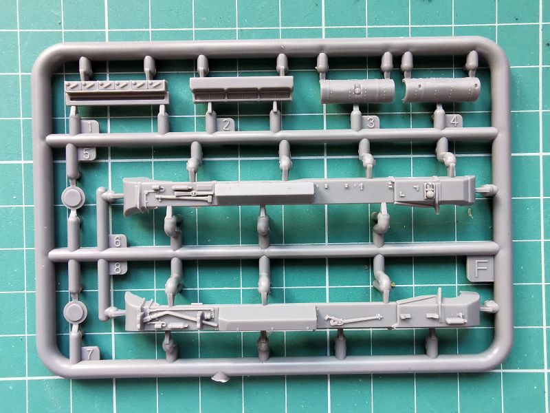 Na następnej ramce, która nosi oznaczenie „F” znajdują się błotniki innego typu oraz trochę detali wyposażenia. Moje uwagi w tym zakresie są identyczne jak w przypadku ramki omówionej powyżej.