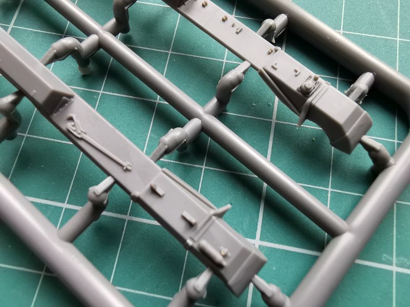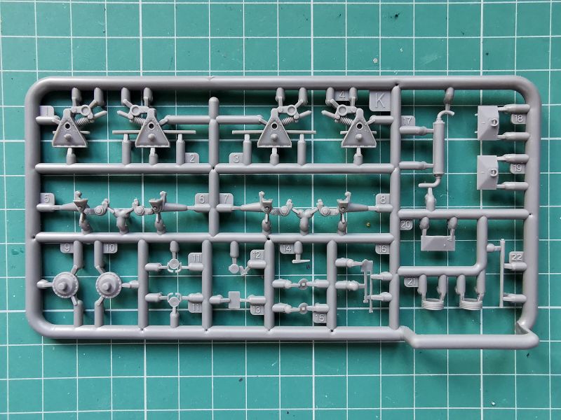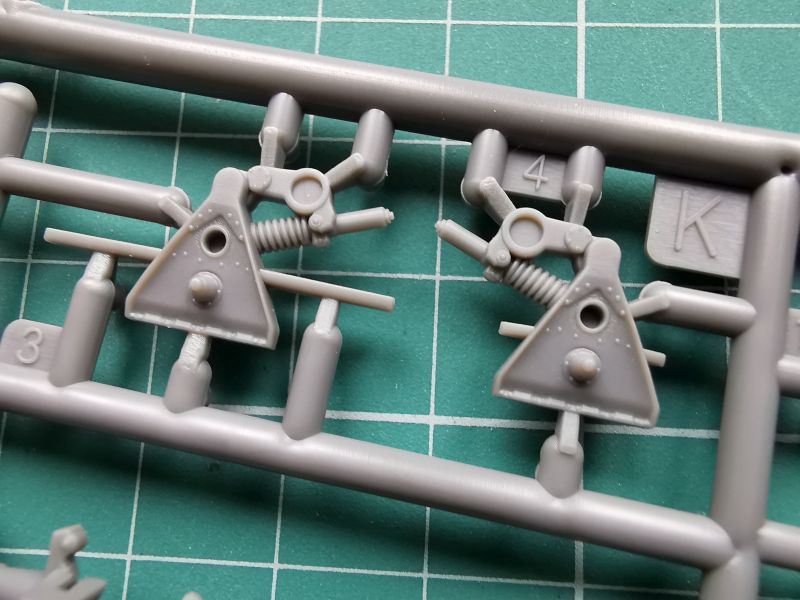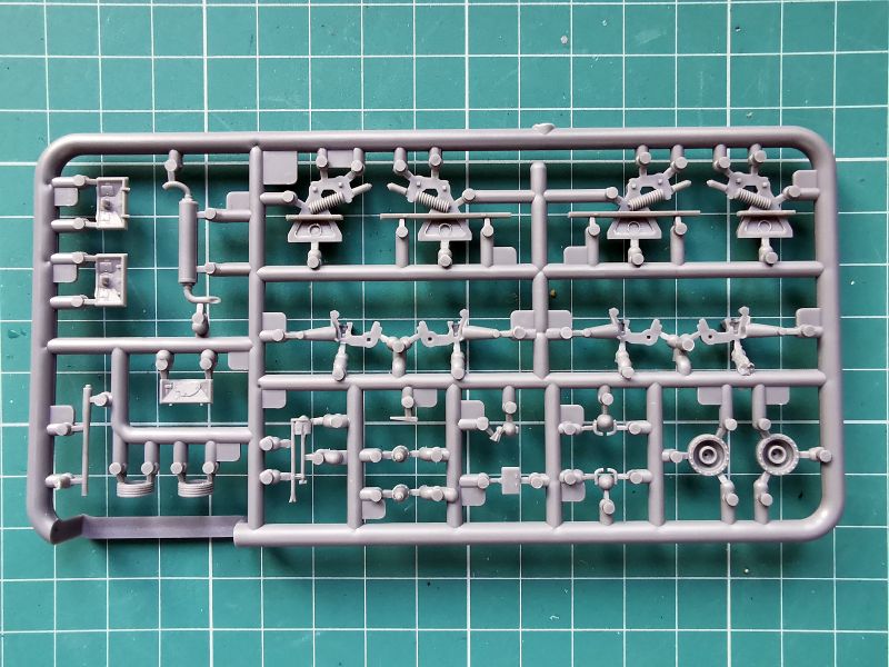 Na ramce „K” jest wszystkiego po trochu. Mamy detale układu jezdnego i wyposażenia wozu. Na szczególną uwagę zasługują to wózki jezdne wraz z amortyzatorami. To jedne z rzeczy które „robią robotę” jeśli chodzi o ostateczny wygląd modelu.