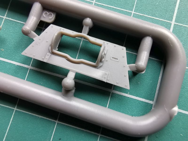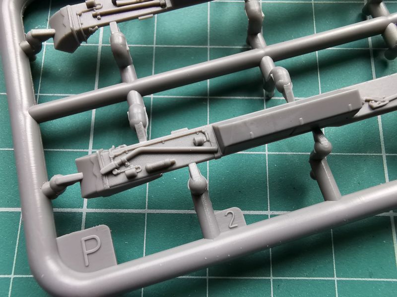 Ramka „P” to błotniki, zaś na nich umieszczono różne elementy wyposażenia pojazdu, głównie osprzęt saperski. Sposób wykonania tych elementów jest na tyle dobry, że wystarczy je odpowiednio pomalować i użyć zabiegów w postaci wascha, aby uzyskać efekt, jakby to wszystko leżało na błotnikach a nie było wykonane jako jeden element. Można jedynie się pokusić o zaślepienie prostokątnych otworów z dołu błotników, mogą one być widoczne po zmontowaniu modelu w całość.