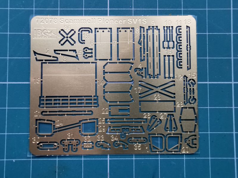 Uzupełniająca polistyrenowe elementy blaszka fototrawiona została zaprojektowana specjalnie na potrzeby tego zestawu i zawiera sporą ilość detali z uwzględnieniem różnic pomiędzy wersją wczesną i późną naszego pojazdu. Poza blaszką w zestawie znajdziemy także kliszę, z której wykonamy szyby w szoferce oraz kawałek linki do wciągarki.