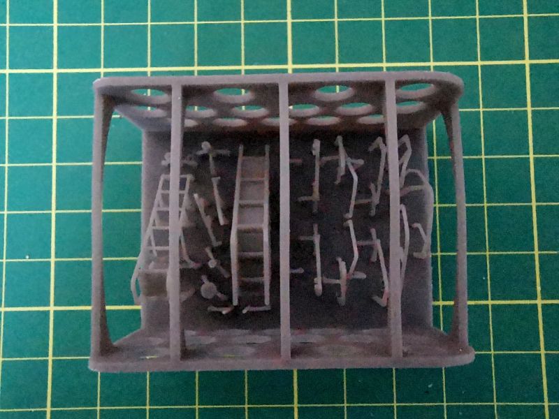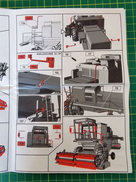 Zwłaszcza takich, jakie znajdują się na kolejnych wydrukach. Są to wszelkiego rodzaju schodnie, drabiny, poręcze czy uchwyty, tutaj raczej przyda się nowa, ostra żyletka oraz sporo skupienia i cierpliwości. Osobnym wydrukiem jest też przewód do zrzutu zboża z młockarni.