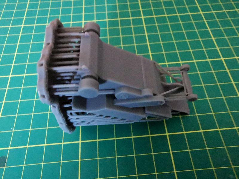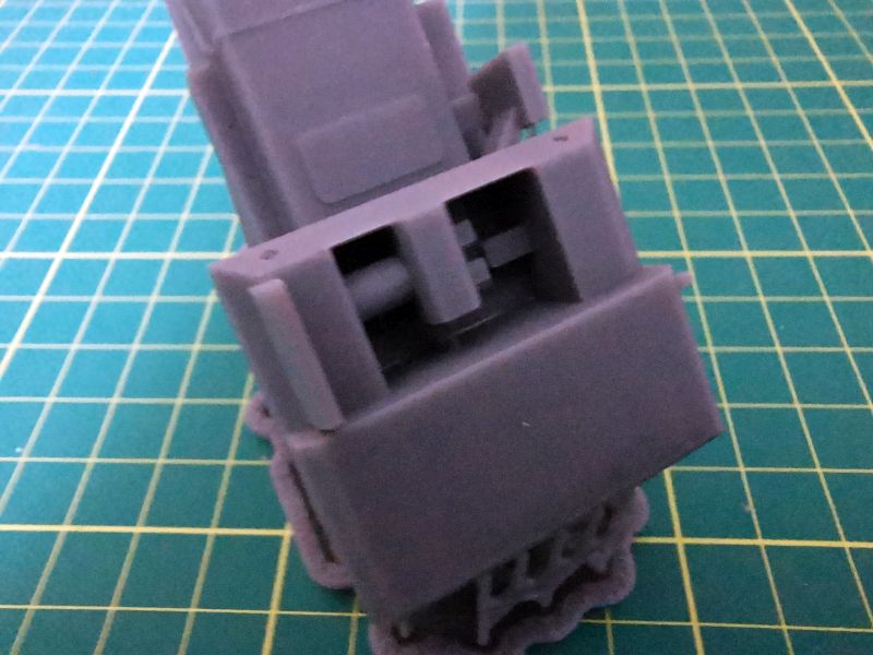 Podstawą zestawu są dwa spore wydruki zawierające kadłub pojazdu (zdjęcia z lewej) oraz jego podwozie (zdjęcia z prawej). Obydwa te elementy należy połączyć z sobą i dopiero na nich montować pozostałe elementy kombajnu. Trzeba przyznać, że jakość ich nie budzi moich zastrzeżeń. Detale są wykonane poprawnie merytorycznie, ostro i wyraźnie. Trzeba też wziąć pod uwagę, że jest to przeskalowana „w górę” miniatura w skali 1/87 (H0) opracowana pod kątem użycia w makietach kolejkowych H0, dlatego tez musi się cechować w miarę prostym montażem. Jeśli zatem ktoś chce się naprawdę wgryźć w temat, czeka go samodzielna waloryzacja, ale na szczęście zdjęć tego typu kombajnów w sieci jest dość sporo. Są też dwie wiadomości dla wszystkich fanów różnego rodzaju wad produkcyjnych. W modelach opracowanych metodą wydruku 3D to ślady po kolejnych warstwach druku. W tym modelu takowe są, niestety żeby je zobaczyć trzeba mieć naprawdę porządną lupę, po drugie niestety, znikną po nałożeniu podkładu i pomalowaniu modelu. Jaka szkoda.