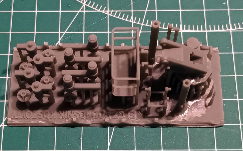 Elementy otrzymujemy niepowycinane, więc pierwszym krokiem modelarza będzie usunięcie pomocniczych części pozostałych po druku 3D. Aby lepiej zaprezentować wygląd elementów modelu prezentujemy zdjęcia już po wykonaniu tych czynności ale bez szlifowania i oczyszczenia części.