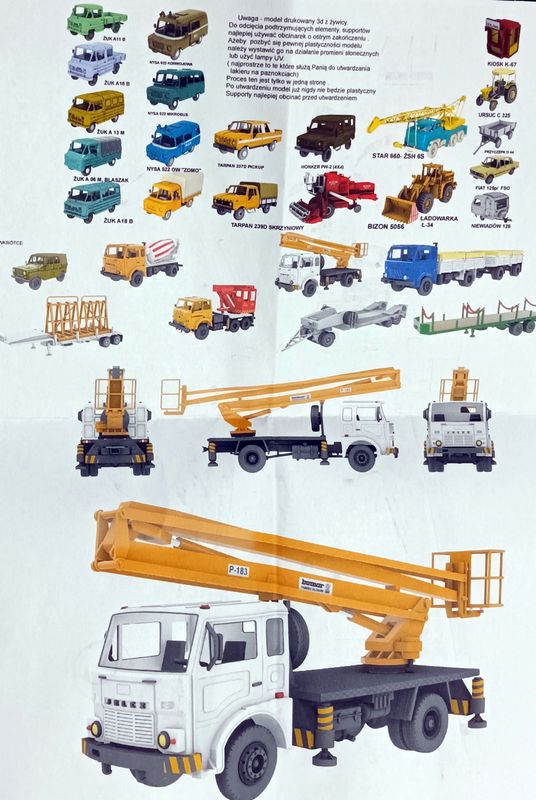 Miłośnicy pojazdów z okresu PRL mogą cieszyć się z kolejnego modelu w skali 1:72. Jest to wydrukowany przez firmę GPM, w technologi 3D, Jelcz 325 z zabudowanym podnośnikiem koszowym. W pudełku znajdziemy instrukcje montażu wraz z minikatalogiem modeli 3D w skali 1:72, części z szarej i czarnej żywicy (opony), oszklenie kabiny (vacu, wszystkie szyby jako jeden element) i wycinane laserowo z kartonu drobne elementy takie jak drabinki, lusterka i wycieraczki.