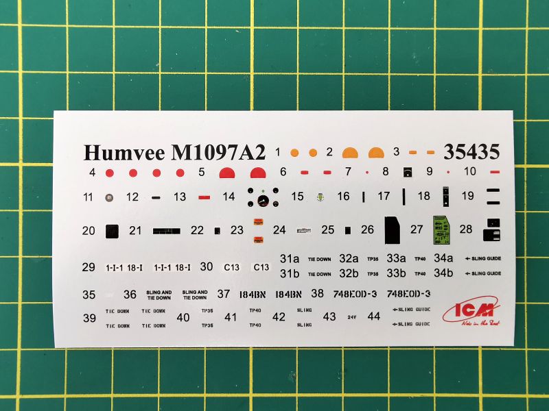 Kalkomania to niewielki arkusik, na którym poza oznaczeniami do dwóch opcji malowania znajdują się także tarcze wskaźników na tablice rozdzielczą, imitacje świateł pozycyjnych, stopu i odblasków.