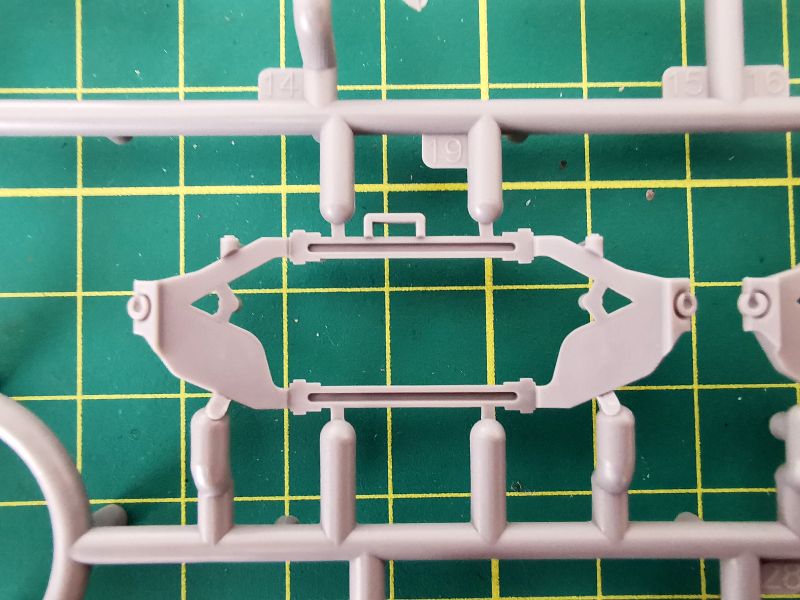 Podobnie jest w przypadku ramki „B”. Większe podzespoły nadwozia i karoserii przeplatają się z detalami jednostki napędowej. Tak, ten model ma makietę silnika, co jest niewątpliwym plusem tego zestawu. Podobnie jak sposób odwzorowania drobnych detali – wyraźne, ostre i dbałością o najmniejsze nawet szczegóły, co mam nadzieję udało mi się oddać na zdjęciach.