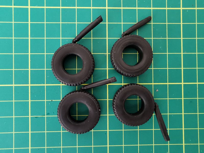 Opony wykonano z czarnego winylu. Posiadają wyraźny bieżnik, nie ma natomiast żadnych emblematów czy napisów na bokach. Muszę przyznać, że miałem wątpliwości czy tak ma być, ale wystarczyło obejrzeć kilka przypadkowych zdjęć w sieci, by przekonać się, że ICM niczego nie przegapiło.