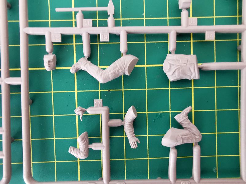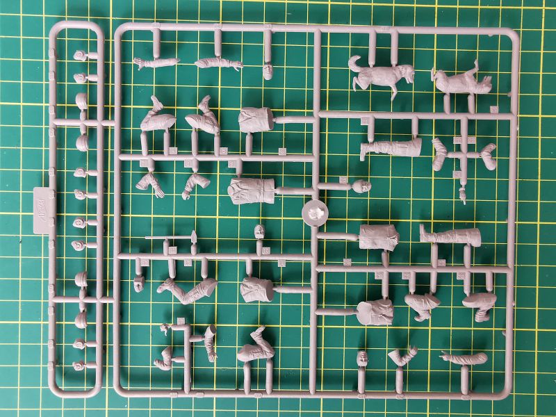 Wcześniej jednak trafiłem na informacje, że ICM zdecydował się na wydanie „przepaku” wkładając do pudełka wypraski firmy Revell. Ponieważ wypraski różnych modeli ICM-u wielokrotnie były sprzedawane przez Revella, nie powinno dziwić, że podstawą ukraińskiego zestawu są wypraski niemieckiego producenta. Pierwszy raz ma jednak miejsce sytuacja odwrotna. Figurki ukraińskich czołgistów uzupełniających zestaw, to już autorska produkcja ICM-u i od niej chciałbym zacząć omawianie całego zestawu.