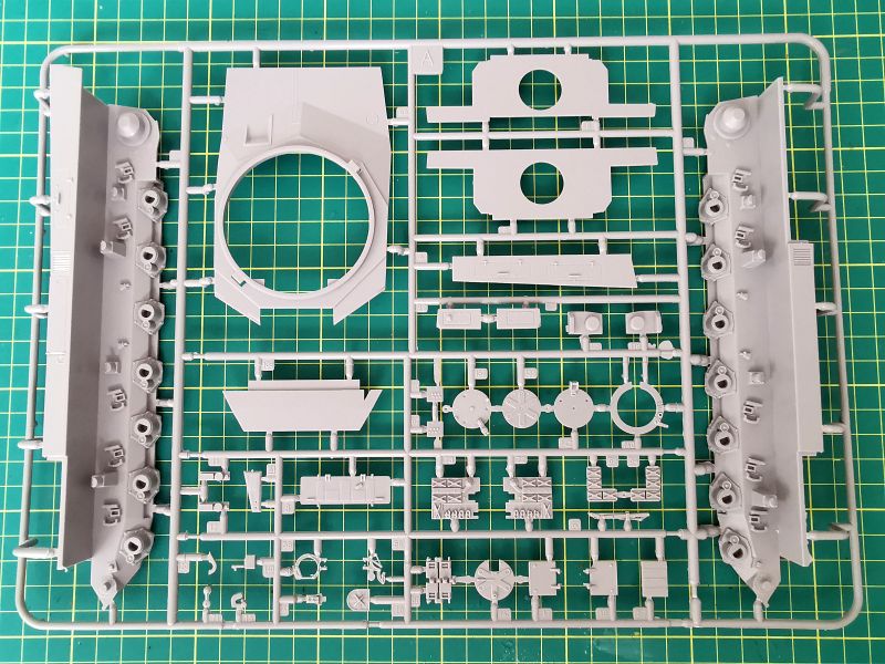 Jako druga była oglądana i fotografowana ramka „A”. Tu znajdziemy boki podwozia , dalsze detale kadłuba oraz podstawę wieży. Także ładnie i poprawnie wykonane detale i szczegóły konstrukcyjne. Jedyne nadlewki jakie znalazłem znajdowały się na ramkach wtryskowych, więc się nie liczy.