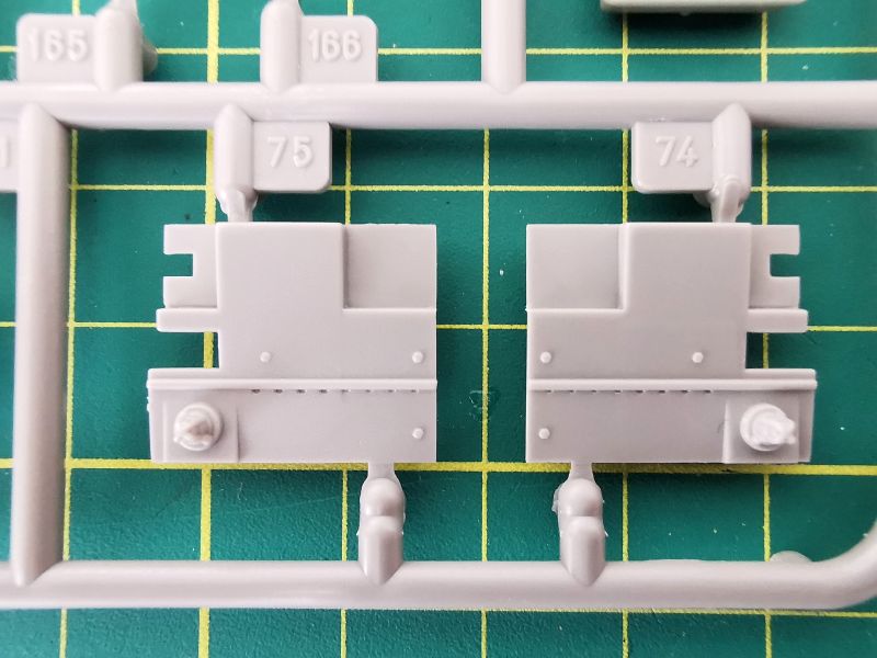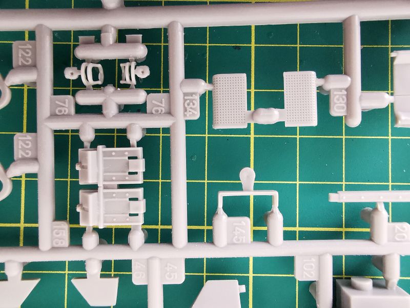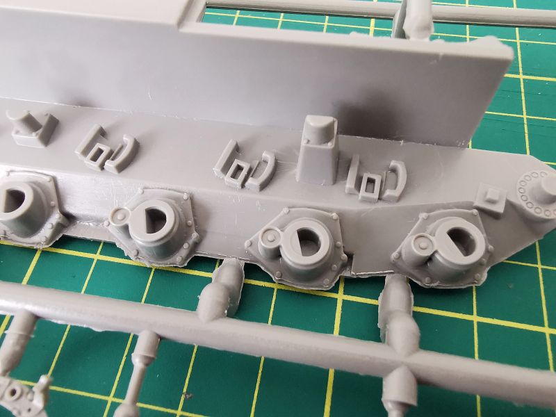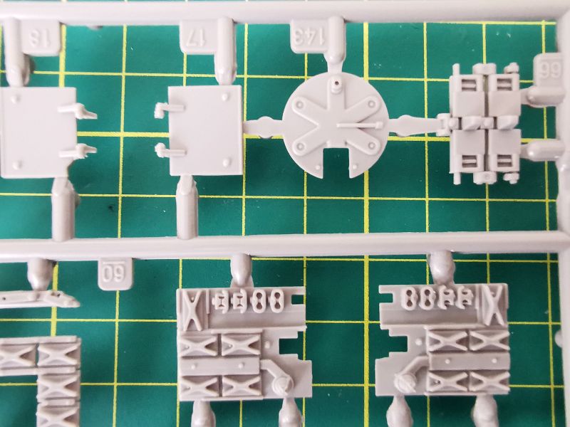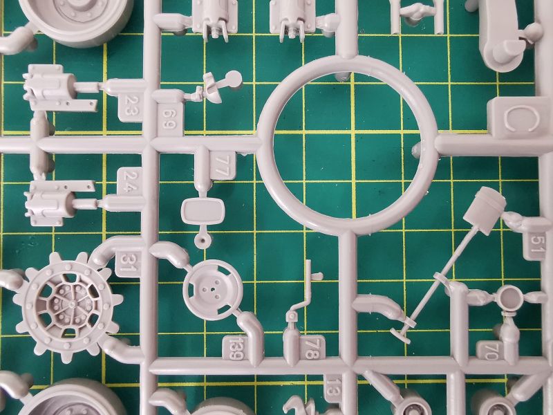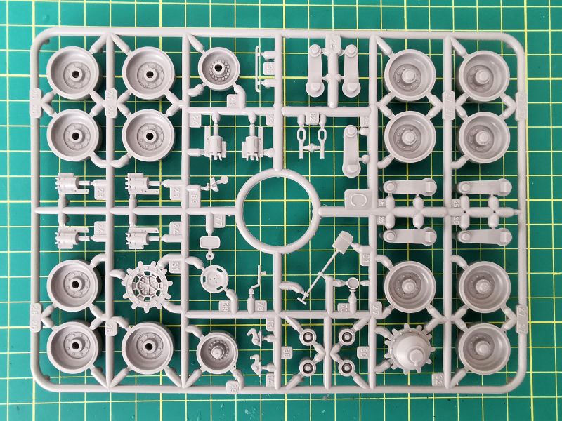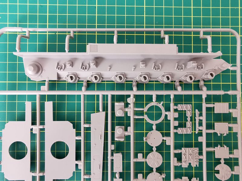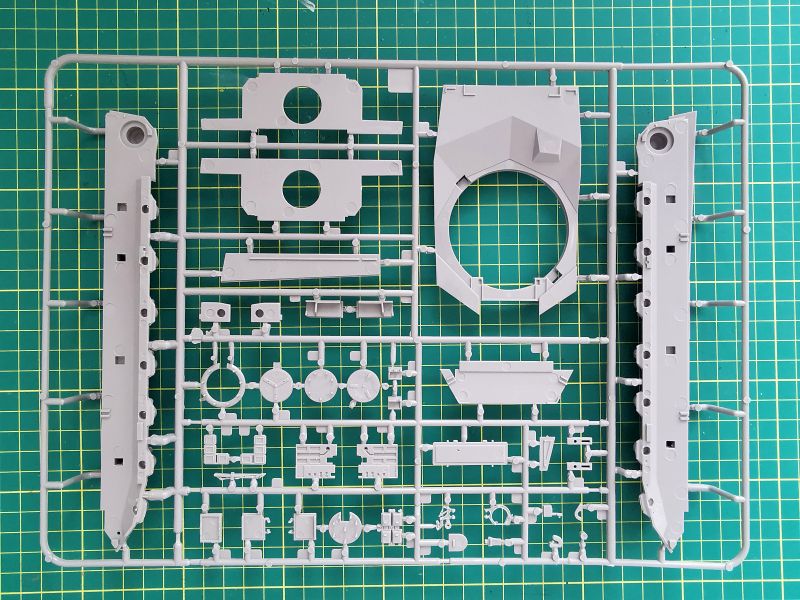 Trzecia z większych ramek nosi oznaczenie „E”. Jej zawartość to głównie podzespoły wieży, ale też spora ilość drobnych detali wyposażenia czołgu. Jakość taka jak poprzednio, czyli bez zastrzeżeń.