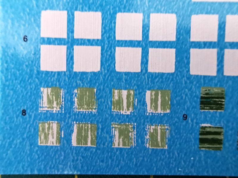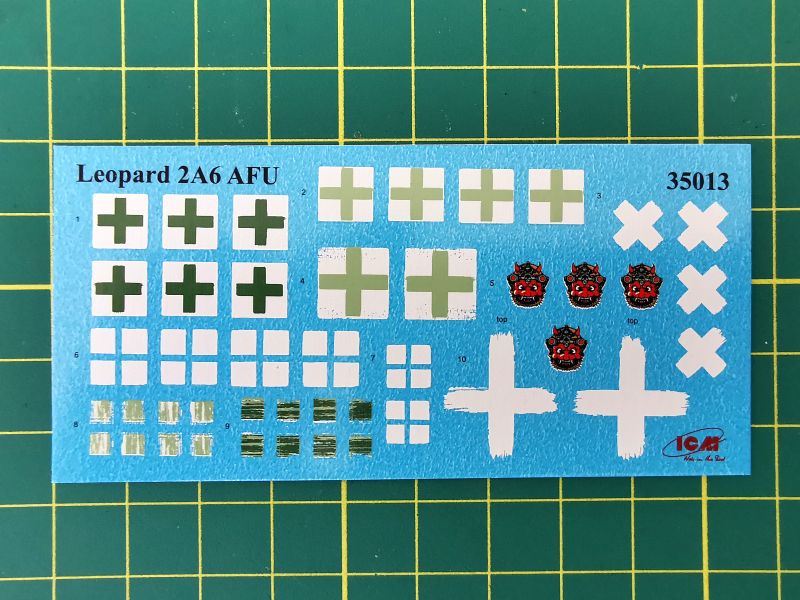Kalkomania to stosunkowo niewielki kartonik, jeżeli wziąć pod uwagę ilość malowań jakie oferuje zestaw. Znajdziemy na nim głównie oznaczenia w postaci sporej ilości wersji białego krzyża, jakim oznaczane są ukraińskie pojazdy bojowe oraz godła. Jak widać na zdjęciach jakość druku jest bardzo dobra, z naklejaniem też nie powinno być większych problemów.