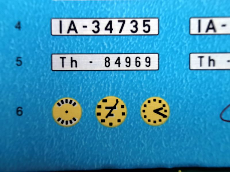 Kalkomania to niewielki arkusik na którym dominuje pięć kompletów tablic rejestracyjnych oraz wskaźniki na deskę rozdzielczą. Wszystko wyraźne i bez wad drukarskich.