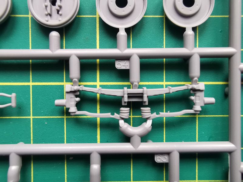 Druga ramka to podwozie, jednostka napędowa, układ przeniesienia napędu oraz trochę drobnych detali. Także tu nie ma żadnych uproszczeń i pójścia na skróty. Jeśli ktoś będzie chciał wyeksponować silnik, powinien we własnym zakresie dołożyć wiązki przewodów elektrycznych, paliwowych i temu podobnych. Warto też w tym celu zgromadzić jakąś dokumentację, żeby wiedzieć jak one przebiegały.