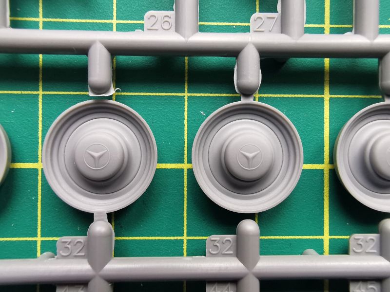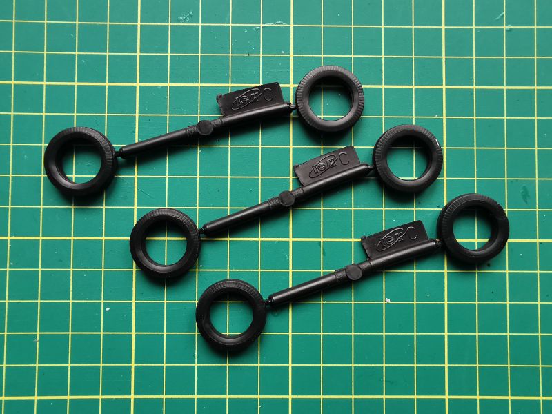 Elementy polistyrenowe, jak to w takich zestawach bywa są uzupełnione o winylowe opony. Sześć opon z ładnie wykonaną imitacją bieżnika, bez żadnych oznaczeń czy napisów na bokach. Widocznie tak miało być.