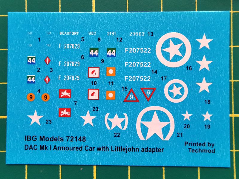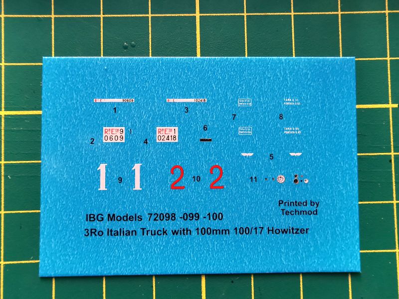 Kalkomania natomiast została przygotowana na potrzeby omawianego zestawu. Niewielki arkusik, pomimo dość sporych elementów graficznych do umieszczenia na szoferce ciężarówki. Oznaczenia na czołgi mają za to postać nader skromną, bo ograniczającą się jedynie do numerów lub w jednym przypadku z prostych elementów graficznych, więc się wszystko wyrównało.
