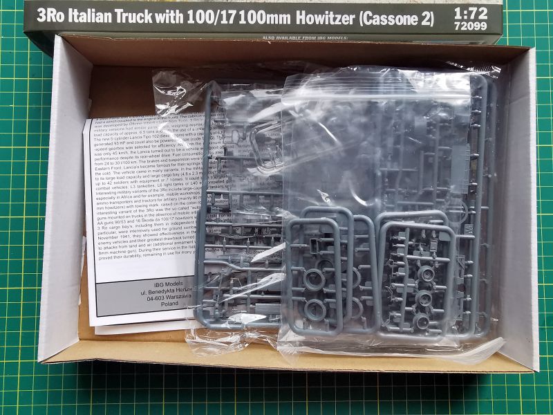 Drugi z omawianych w tym miejscu zestawów, to także element większej całości, czyli całej rodziny modeli włoskich samochodów ciężarowych Lancia 3Ro. Tym razem, niemal na koniec, producent zostawił sobie wariant, od którego zaczął wydawanie modeli tych pojazdów w skali 1/35. Jest to wersja z odkrytą szoferką i zabudowaną haubicą polową 100/17 100 mm.