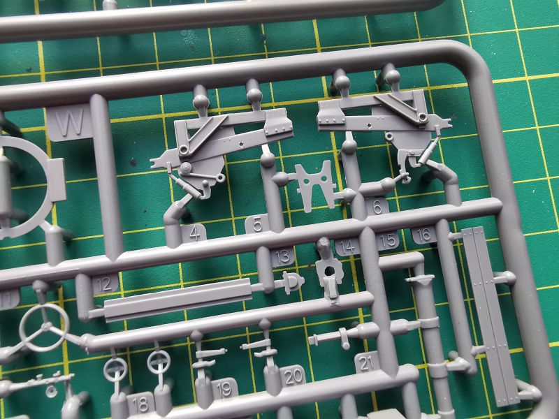 Są za to wypraski zawierające platformę do zabudowy haubicy oraz elementy samej haubicy wraz z wyposażeniem. Są to ramki „Y” i „W”. Jak natomiast wyglądają rozmieszone na nich elementy, widać na powyższych zdjęciach.