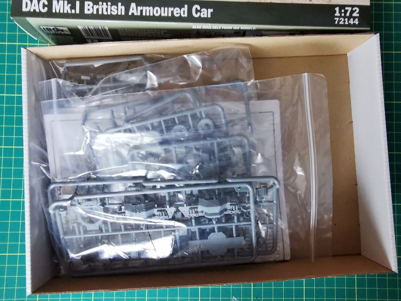 Samochody pancerne DAC uważane są za jedne z najbardziej udanych konstrukcji tego typu. Używane były w dużych ilościach przez ilościach przez wojska alianckie w latach ostatniej wojny, jak i wiele lat po jej zakończeniu. Producenci modeli wtryskowych jednak nie interesowali się tą konstrukcją w jakiś przesadny sposób o czym świadczy, że na przestrzeni lat w skali 1/72 powstały jedynie dwa zestawy. Japońska Hasegawa wydała swój model w 1975 roku zaś firma Popeye w latach 80 – tych zeszłego stulecia. Co ciekawe pudełka obu tych zestawów niezależnie od edycji których było kilka zdobi ten sam boxart. Sytuacja zmieniła się na wiosnę 2024 r. kiedy po temat DAC sięgnęła rodzima firma IBG Models wydając jednocześnie dwa zestawy – podstawową odmianę Mk. I oraz bezwieżową tzw. „Swan-off”. Dzięki uprzejmości producenta mogłem zapoznać z zawartością obu pudełek.