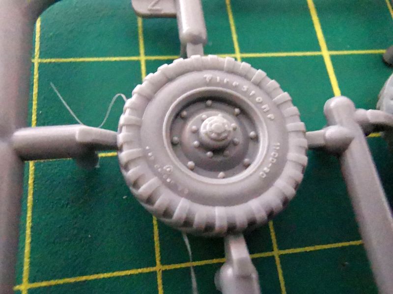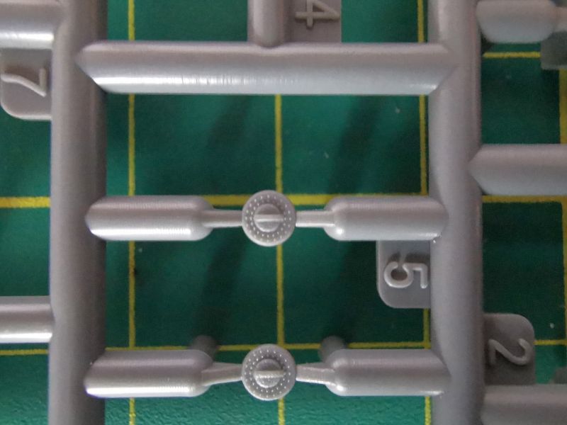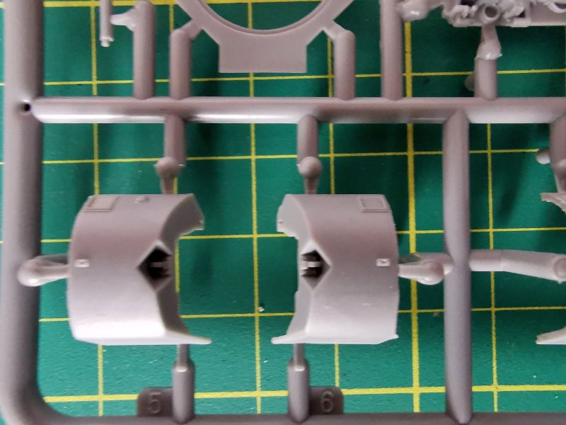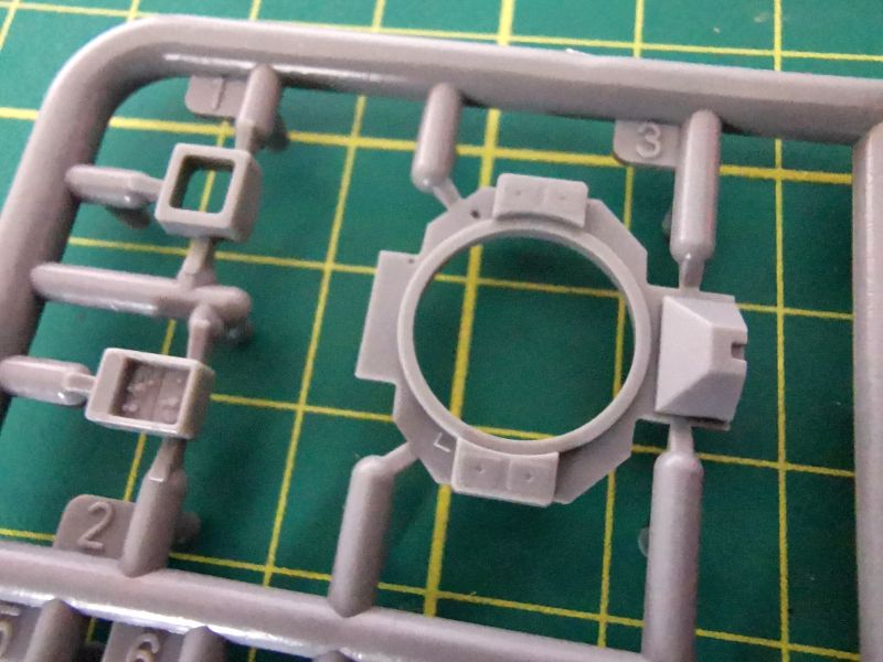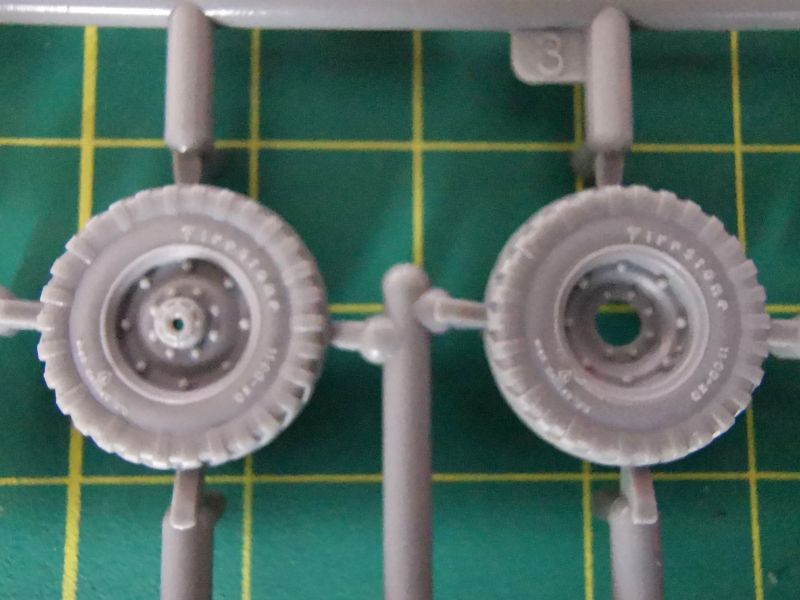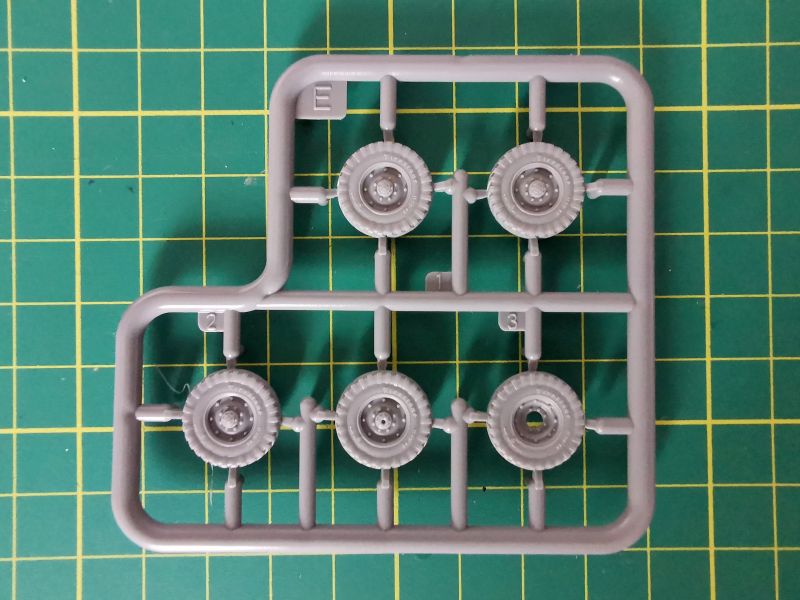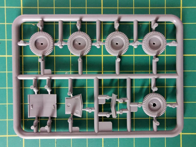 Koła oraz kilka elementów kadłuba to ramka „Q”. Osobiście jestem pod wrażeniem szczegółów znajdujących się na kołach. Bieżniki, napisy na oponach, detale na felgach. Nie wiem czy właściciele drukarek 3D będą tu mieli coś do roboty, choć kto wie? Trzeba też pamiętać, że koła to pojedyncze i dość grube elementy, a przy produkcji takich łatwo o jamki skurczowe, zaś IBG udało się tego uniknąć.