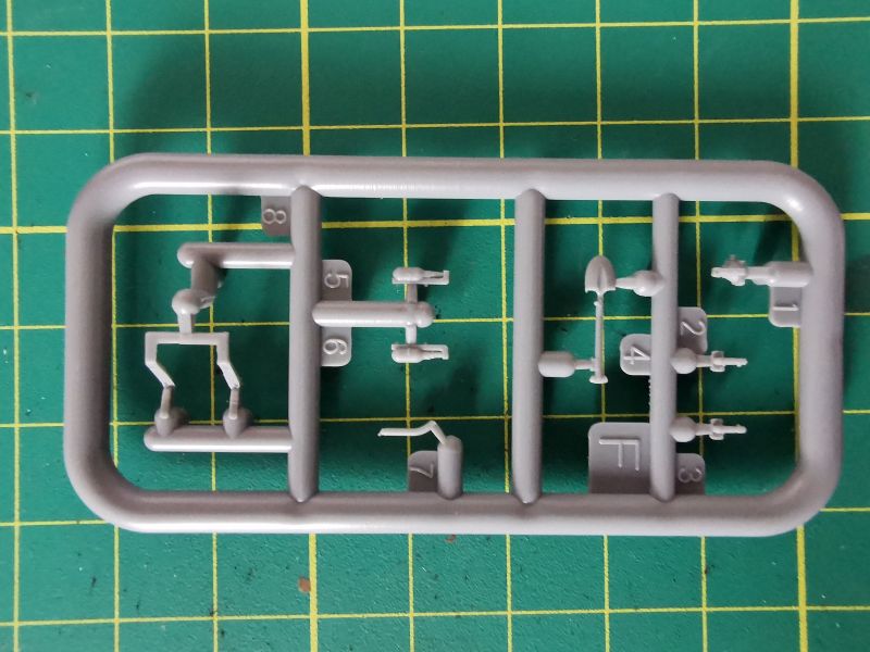 Ramka „F” jest najmniejsza ze wszystkich. Znajdziemy na niej trochę drobnych detali zewnętrznych, osprzęt saperski, lampy i temu podobne drobiazgi.