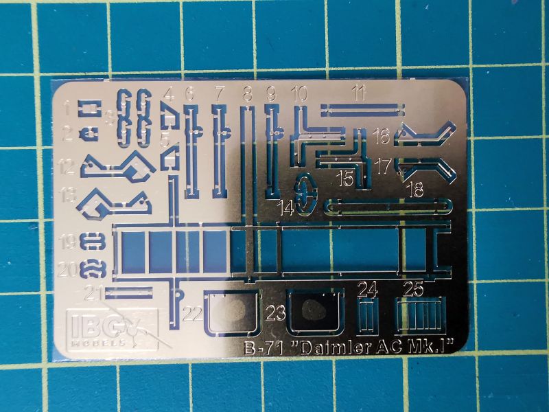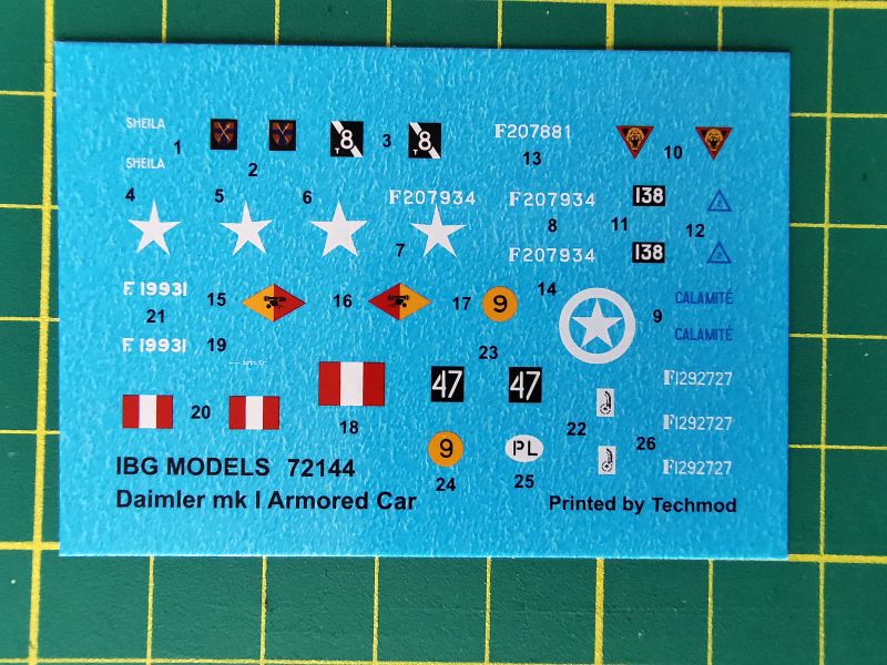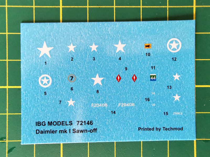 IBG Model konsekwentnie uzupełnia elementy wykonane z tworzywa fotorawioną blaszką. Omawiany zestaw nie jest tu wyjątkiem, na blaszce znajdziemy dość dużą ilość przydatnych elementów, takich jak uchwyty i poręcze. Wszystko to na pewno przyda się przy budowie. Arkusik kalkomanii jest niewiele większy od blaszki, a znajduje się na nim wszystko, co jest potrzebne do wykonania miniatury w jednym z czterech zaproponowanych przez producenta wariantów malowania.