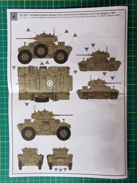Plansze te zostały zamieszczone na ostatnich stronach instrukcji, w której jedyne zmiany w stosunku do wcześniejszych modeli tego producenta to bardzo obszerna notatka ukazująca historię powstania i użycia samochodów DAC i dodanie do wykazu kolorów potrzebnych do pomalowania modelu kolejnego nowego producenta – Mission Models.