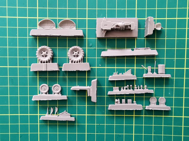 Jak zaznaczyłem powyżej, podstawę zestawu tworzą elementy żywiczne. W sumie czternaście wlewek z jasnoszarej żywicy. Jakość odlewów jest dobra, nie dopatrzyłem się żadnych pęcherzyków powietrza czy jakiś miejsc, gdzie żywicy nie dolano jak należy. Pod względem technologicznym wszystko jest w porządku.
