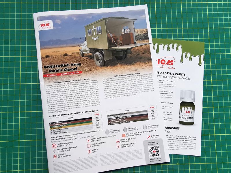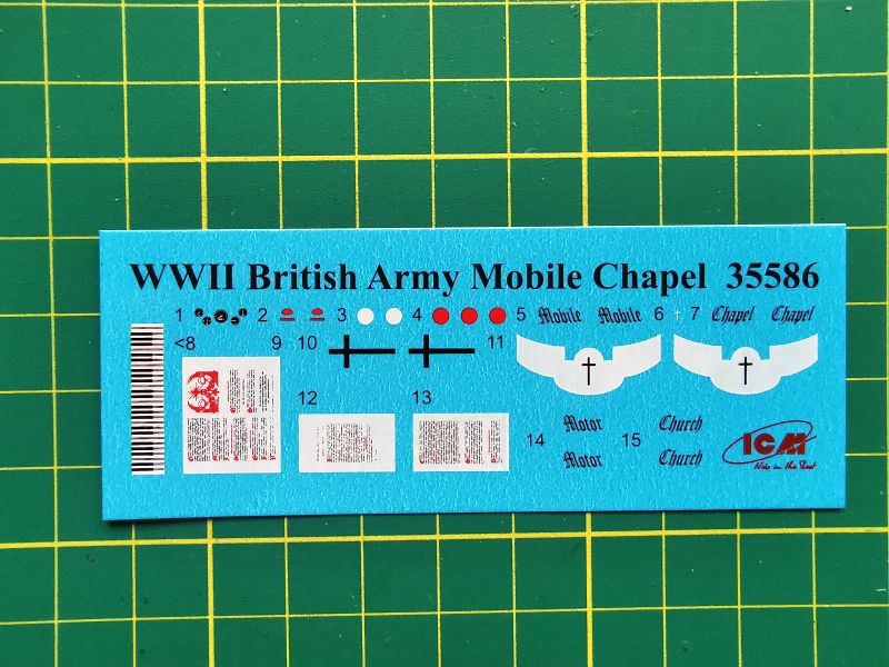 Przedstawia on ową mobilną kaplicę w surowym pustynno – górzystym otoczeniu, wszak owe kaplice były używane przez oddziały brytyjskie, walczące w Afryce Północnej. Tyle przynajmniej wydedukowałem z notatki umieszczonej w instrukcji. Czy były używane w późniejszym okresie, na przykład w Kampanii Włoskiej tego nie wiem. Sama konstrukcja mobilnej kaplicy powstała przez adaptację ciężarówki Chevrolet G7117. Po prostu zwykłą krytą „budę” przystosowano do roli kaplicy, dodając okna i odpowiednie oznakowanie, zaś w środku umieszczono wszystko, co było potrzebne do sparowania obrzędów religijnych.