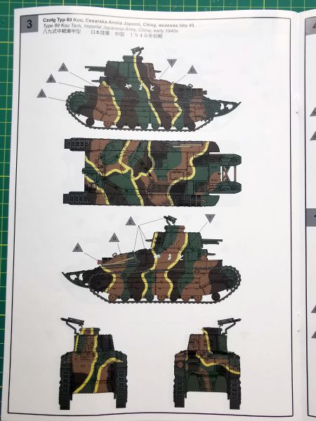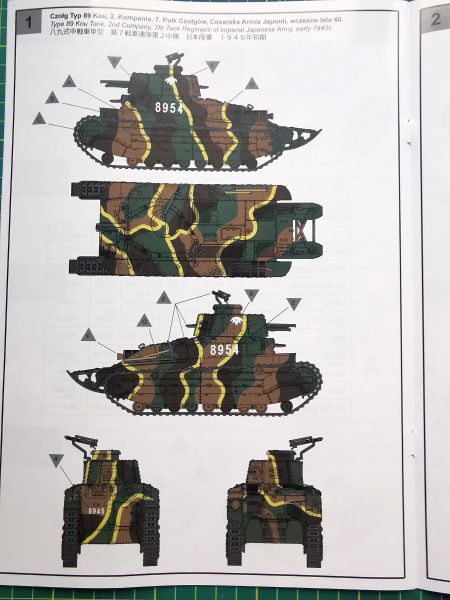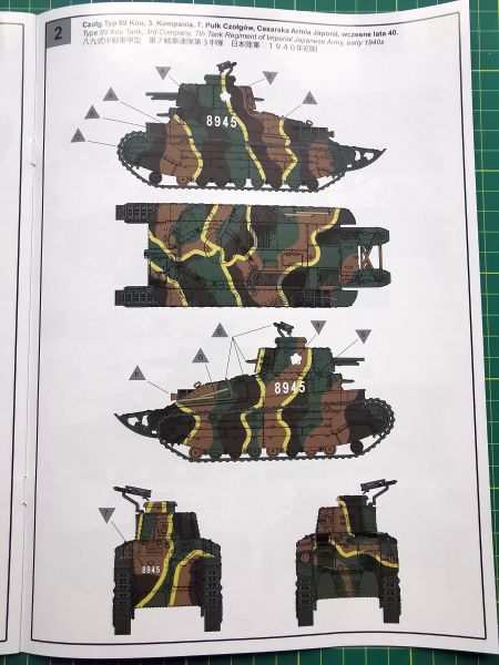 Producent przewidział trzy warianty malowania dla czołgów średnich Type 89 Kou. Dwa pierwsze malowania pochodzą z Wysp Macierzystych a dokładnie z 7 Pułku Czołgów, trzecie zaś z bliżej nie ustalonej jednostki z Chin. Wszystkie malowania pochodzą z pierwszej połowy lat 40. zeszłego stulecia. W przypadku czołgów lekkich Type 95 Ha-Go dysponujemy dwoma malowaniami. Pierwsze z nich pochodzi z 1 Pułku Czołgów operującego na początku 1942 roku na Półwyspie Malajskim, zaś drugie wyróżniające się oryginalnym kamuflażem i godłem na wieżyczce to pojazd z nieustalonej jednostki z okresu walk o Iwo Jimę w 1945 roku.