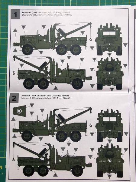 Dołączone do zestawu kalkomanie umożliwiają wykonanie modelu w jednej z czterech opcji malowania. Wszystkie w jednolitym amerykańskim malowaniu Olive Drab. Różne są tylko oznaczenia. Uwagę jednak zwraca malowanie powojenne, gdzie białe gwiazdy zostały zastąpione napisem „US Army”.