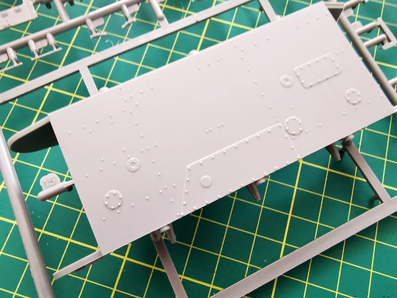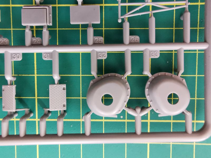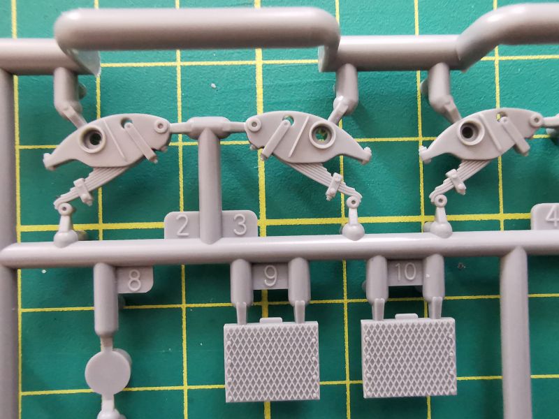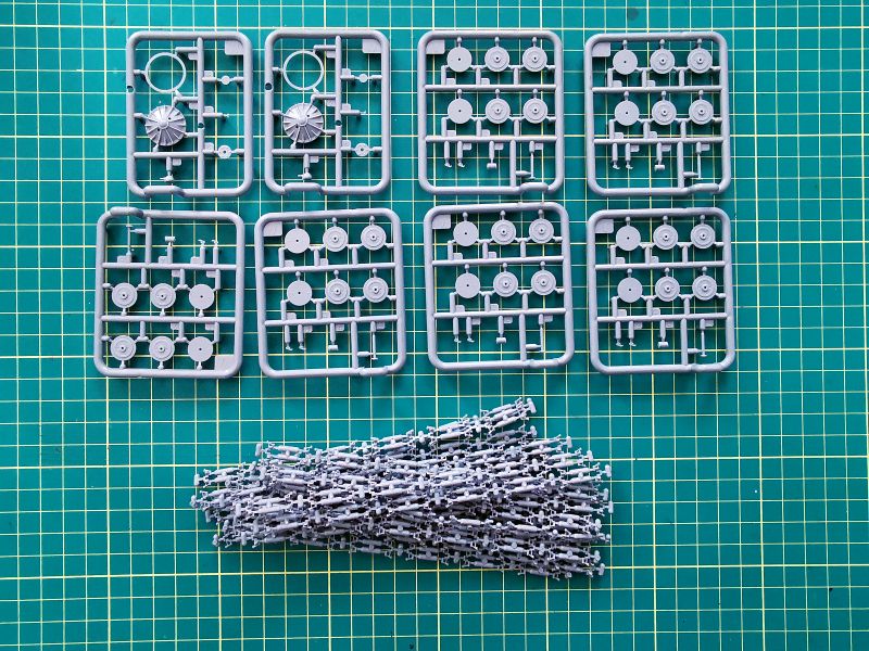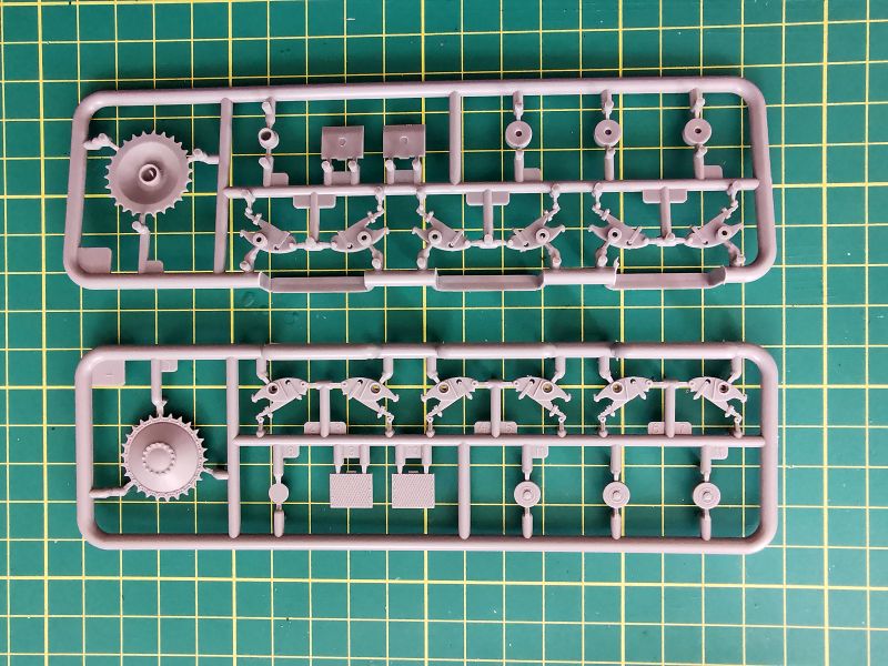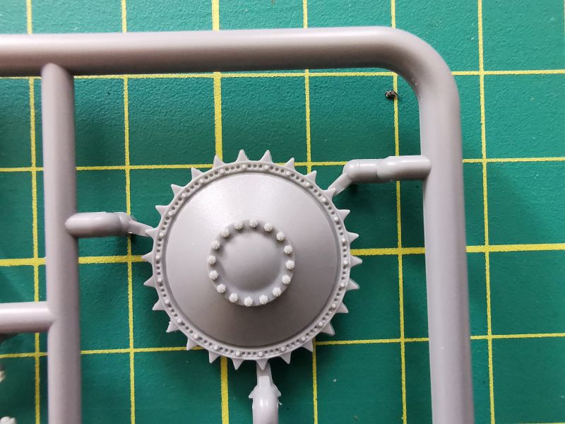 Pozwoliłem sobie zamieścić w tym miejscu nieco ujęć detali znajdujących się na tych ramkach. Zależy mi na tym aby każdy wyrobił sobie własne zdanie na temat jakości ich wykonania czy odwzorowania detali. Jedni zobaczą tu rzetelnie i dobrze opracowany zestaw, inni wołający o pomstę do nieba bubel, który dyskwalifikują złe kąty zębów na gąsienicach, przekrój żłobienia w łbach śrub czy też niewłaściwe nachylenie względem siebie poszczególnych piór resorów.