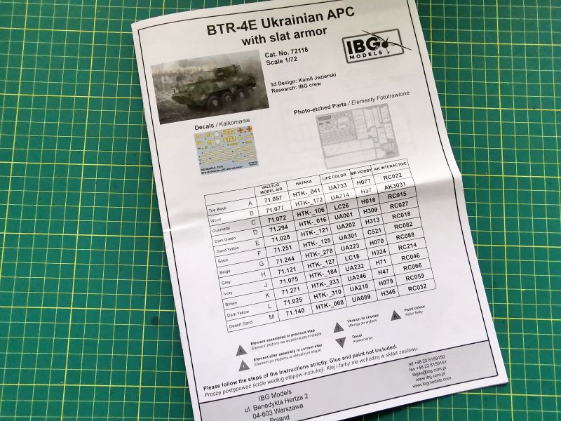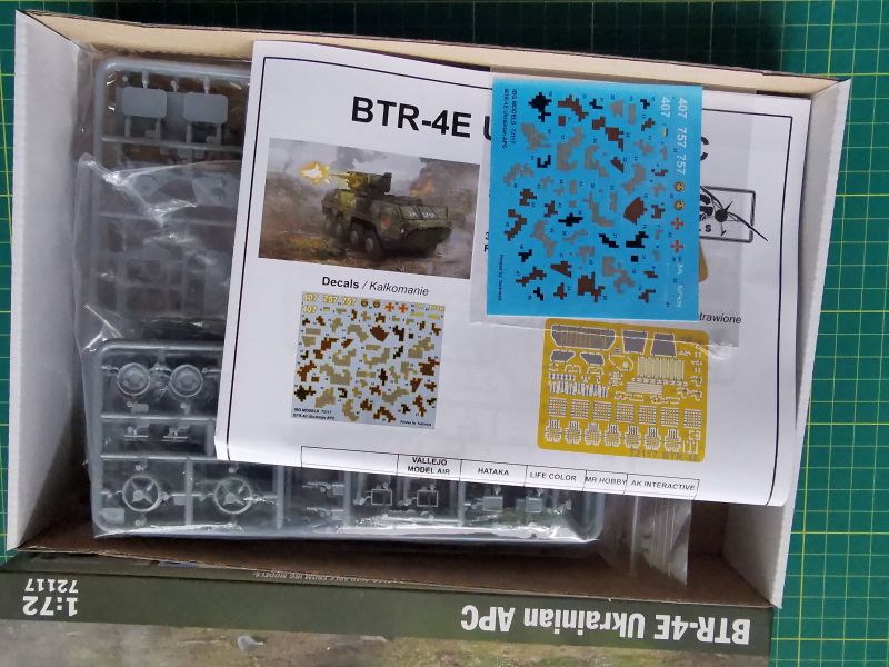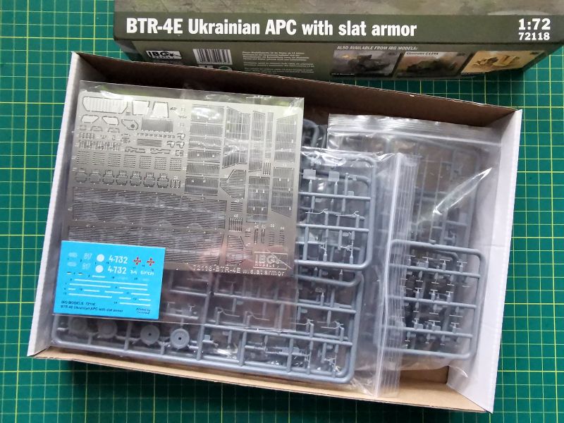 Muszę stwierdzić, że ta pierwsza informacja o nowych modelach bardzo mnie zaciekawiła, zwłaszcza kiedy zobaczyłem boxart jednego z pudełek. Nie jestem specjalistą od współczesnych pojazdów bojowych, ale to co zobaczyłem zrobiło na mnie spore wrażenie. Bardzo ładna, zgrabna sylwetka niezbyt przypominająca dość toporne postsowieckie BTR-y -80, ciekawe malowania, no i niestety temat na czasie, ponieważ pojazdy te aktywnie uczestniczą w odpieraniu rosyjskiej inwazji. Po otrzymaniu modeli do recenzji zacząłem szukać informacji o tych pojazdach. IBG Models jako pierwsze do swojej oferty włączyła modele Odmiany BTR-4E która do produkcji weszła w 2016 r. Modyfikacje dotyczą głównie konstrukcji kadłuba. Natomiast na rynek trafiły jak wspomniałem dwa zestawy, odmiana podstawowa oraz wyposażona w osłony kratownicowe (tzw. "Slat Armor"). Ponieważ różnice pomiędzy oboma zestawami są niewielkie, zdecydowałem się omówienie ich razem.